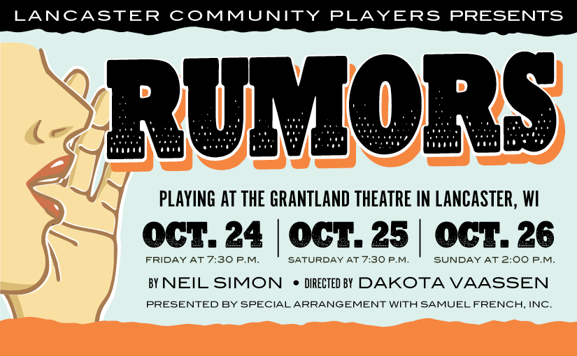 Lancaster Community Players will be holding auditions for Neil Simon’s hilarious farcical comedy, Rumors! Directed by Dakota Vaassen.